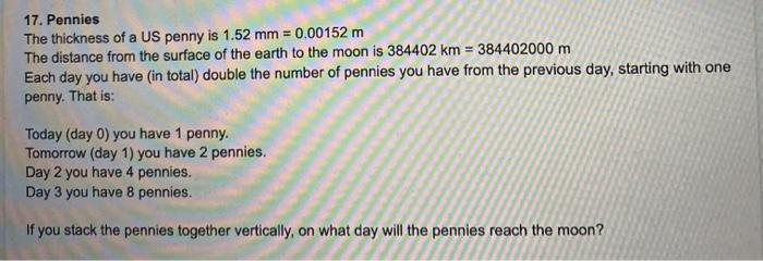 Solved 17 Pennies The Thickness Of A Us Penny Is 1 52 Mm Chegg Com