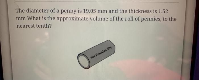 Solved The Diameter Of A Penny Is 19 05 Mm And The Thickness Chegg Com
